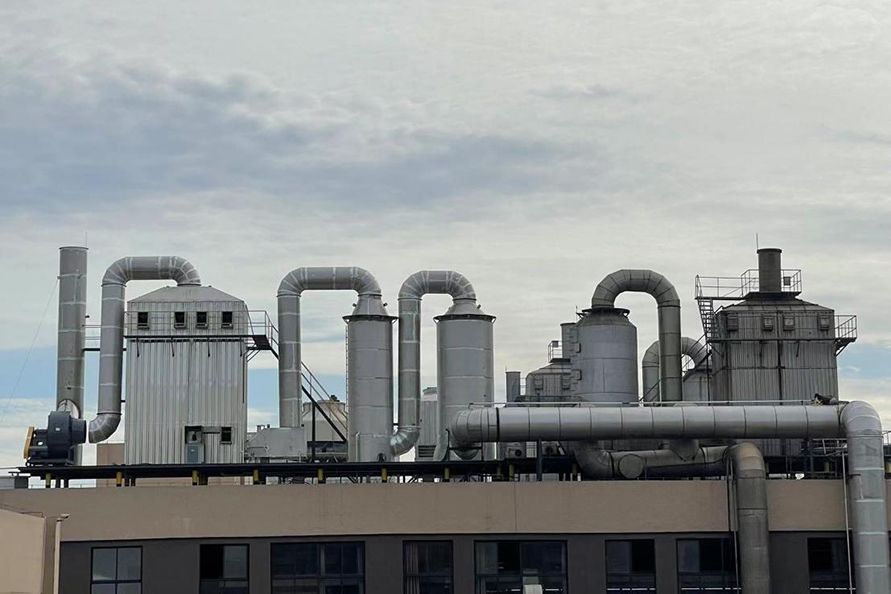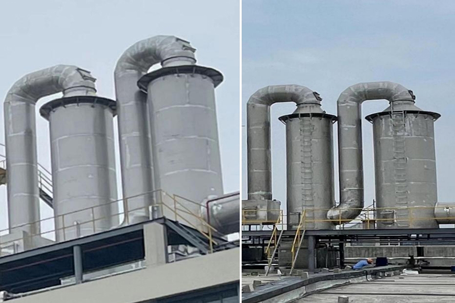 在磷化工、石墨、有色冶煉等行業(yè),生產排放的飽和濕煙氣與低溫環(huán)境空氣接觸時,在煙氣溫度下降過程中,煙氣中的水蒸氣過飽和凝結,凝結水滴折射和散射光線,使煙羽呈白色或灰色,稱為濕煙羽。由于冬季溫度較低,相關問題的環(huán)保投訴較多。那么,有哪些種煙氣脫白技術?各種煙氣脫白的技術原理是怎樣的?1、冷凝相變煙氣脫白技術冷凝相變煙氣脫白原理為:煙氣經濕法脫硫后,含濕量上升,為B狀態(tài),進入換熱消霧模塊后。干態(tài)空氣A入換熱消霧模塊兩者交換后,A溫度上升,含濕量不變,相對濕度降低,處于C。B煙氣,溫度降低,相對濕度不變,含濕量降低,液滴析出,轉為D。D和受熱C流出換熱消零模塊,在氣室中混合,使D溫度下降,濕度降低:C溫度上升,相對濕度上升,兩種狀態(tài)的煙氣混合,最終達到F狀態(tài),AF連線始終處于不飽和狀態(tài),因此,不會出現可見白煙或霧氣團。可以看出,冷凝混風技術是煙氣脫白的較好技術路線,特別是在北方寒冷地區,單純的煙氣再熱很難消除煙囪白煙。2、低電耗離子束煙氣脫白技術低電耗離子束煙氣脫白原理為:高速電子射流擊穿煙氣,產生正負離子體基團,煙氣中氣溶膠、飽和水滴、微小顆粒物在離子束的撞擊下,不斷發(fā)生凝聚效應,顆粒物和水滴快速凝聚成團,在重力作用下,落到離子束除變器底部流入脫硫塔或廢水收集池,達到降解顆粒物,氣溶膠和水零的目的。廢氣中的氨氧化物,由高速電子束提供能量,快速與氨氣發(fā)生還原反應,生成副產物水。低電耗離子束煙氣脫白優(yōu)點:1.放電產生的離子體中,電子能量高,幾乎可以和所有的惡臭氣體分子作用。2.反應快,不受氣速限制。采用防腐蝕材料。3.用電成本低,操作極為簡單,無需派專職人員看守,基本不占用人工費。4.設備啟動、停止十分迅速,隨用隨開,不受氣溫的影響。